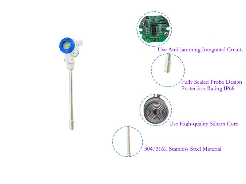 This product uses a high-performance pressure sensor as a measuring element. Accurately measure the hydrostatic pressure that is proportional to the depth of the liquid level through a pressure sensor, It is converted into standard signal (current, voltage, digital) output by a dedicated signal conditioning circuit. Establish a linear corresponding relationship between the output signal and the liquid depth (height) to achieve accurate measurement of the liquid depth. This product is widely used in liquid level measurement and control in the fields of petroleum, chemical industry, power plants, urban water supply, and water conservancy and hydrological surveying.