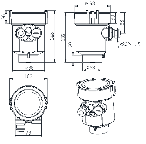 Output: 4~20mA /HART(2-wire/4-wire/6-wire)