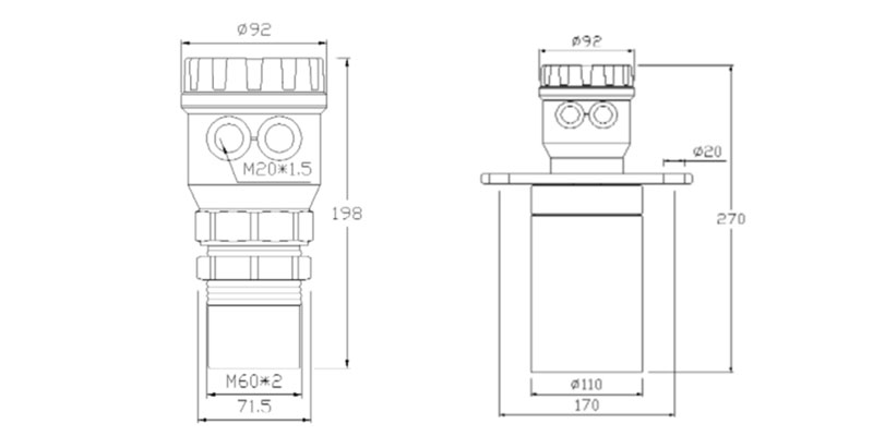 Size of UVUS-U Integrated Ultrasonic Level Meter: